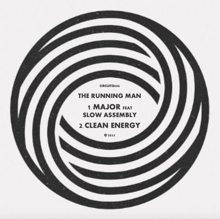 The vibes on display feel like an endless breakdown from the peak of the deep Tribal House days. On the flip, Clean Energy finds The Running Man going solo, delivering a kinetic Electro cut that channels classic machine funk with a modernist edge. Pulsing acidic bass and intricate drum patterns drive you forward, while airy, harmonic elements lend it a melodic flair. Major marks another standout addition to Circuit Grooves’ forward-thinking catalogue and as always a break from the usual.
